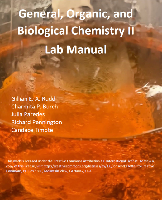 This lab manual for CHEM 1152 was created under a Round 19 Affordable Materials Grant. Lab activities covered include Drawing Organic Molecules, Nomenclature and Functional Groups, Thin Layer Chromatography, Synthesis of Aspirin, Purification and Analysis of Aspirin, Serial Dilution of Food Dye, Protein Standard Curve and Graphing, Dilutions and Protein Assay, Enzymology, and 3D Macromolecules using PyMOL.