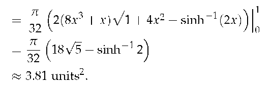 2) Since we are revolving around the y-axis, the "radius" of the solid is not f( x) but rather x. Thus the integral to compute the surface area is:
