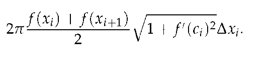 We begin as we have in the previous sections: we partition the interval [ a, b] with n subintervals, where the i th subinterval ]. On each subinterval, we can approximate the curve y = f (x) with a straight line that connects f (xi) and f (xi+i) as shown in Figure 6.23 (a). Revolving this line segment about the x-axis creates part of a cone (called the frustum of a cone) as shown in Figure 6.23 (b). The surface area of a frustum of a cone is