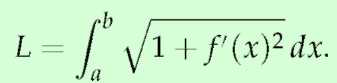 Given a differentiable function f on an interval [a, b], the total arc length, L, along the curve y = f (x) from x = a to x = b is given by