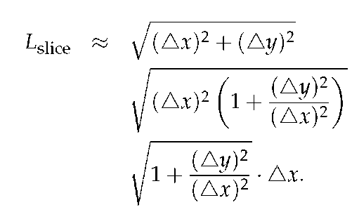 By algebraically rearranging the expression for the length of the hypotenuse, we see how a definite integral can be used to compute the length of a curve. In particular, observe that by remov-
