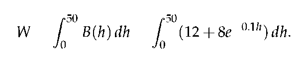 Because work is calculated by the rule W = F • d, whenever the force F is constant, it follows that we can use a definite integral to compute the work accomplished by a varying force. For example, suppose that in a setting similar to the problem posed in Preview Activity 5, we have a bucket being lifted in a 50-foot well whose weight at height h is given by B(h) = 12 + 8e—0.1h.