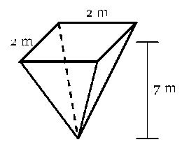 25) A water tank has the shape of an inverted pyramid, with dimensions given below, and is filled with water with a mass density of 1000 kg/m3. Find the work performed in pumping all water to a point 5 m above the top of the tank.