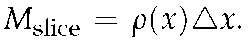 Finally, when we recently learned about the mass of an object of non-constant density, we saw that since M = D • V (mass equals density times volume, provided that density is constant), if we can consider a small slice of an object on which the density is approximately constant, a definite integral may be used to determine the exact mass of the object. For instance, if we have a thin rod whose cross sections have constant density, but whose density is distributed along the x axis according to the function y = p(x), it follows that for a small slice of the rod that is Ax