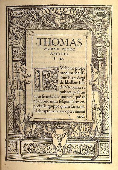 Image 11.18: Utopia, More | Thomas More’s Utopia, written in Latin and decorated with cherub angels around the text.