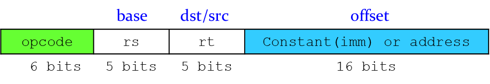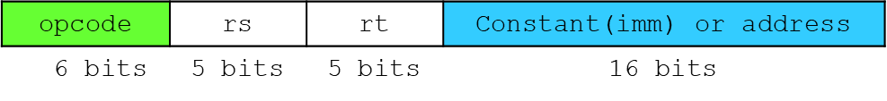 - The first three fields, op, rs, and rt, are like those of R-type instructions.