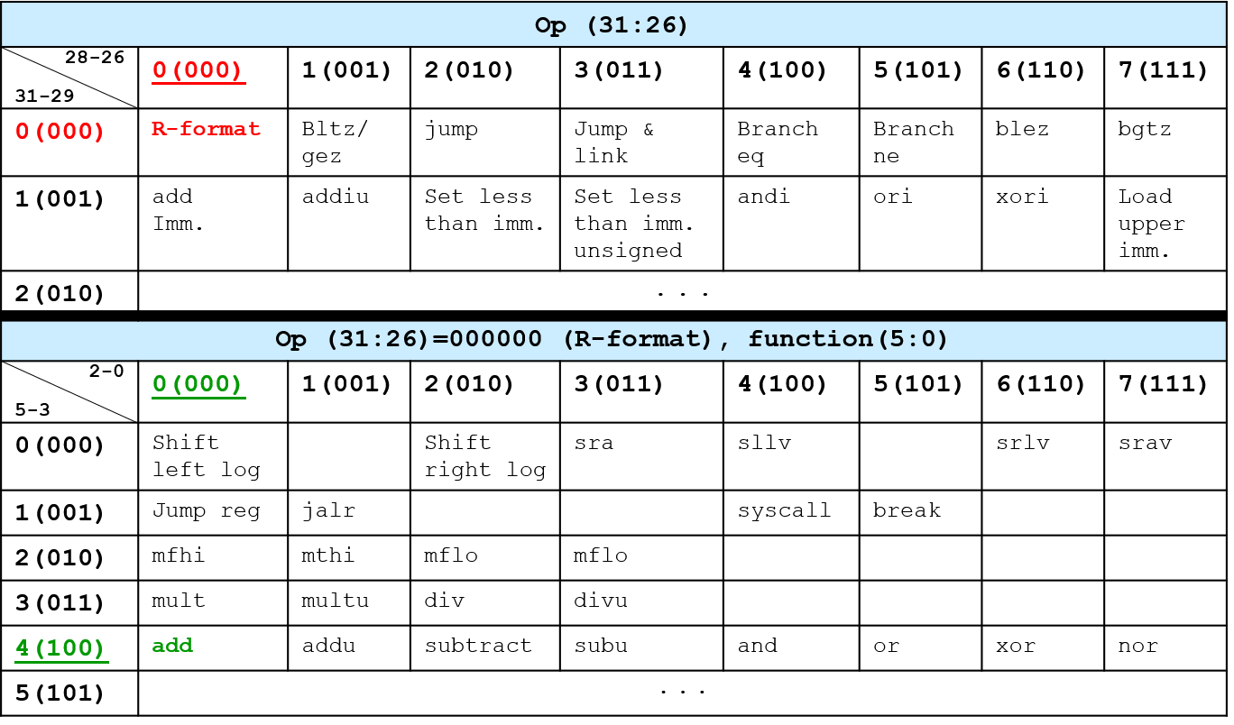 Fig. ‑. R-type Instruction field with Binary Number Representation