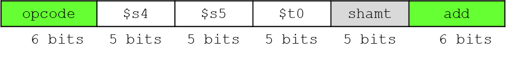 add $t0, $s4, $s5 // $t0->8, $s4->20, $s5->21