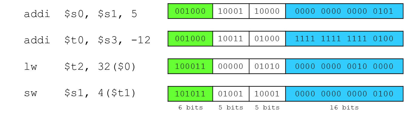Now, let’s look at how the computer can interpret the following I-type instructions into machine languages.