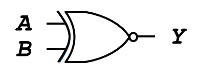 For a two-input XNOR gate, the output Y is true if both input A and input B are the same, either true or false, giving us the Boolean expression of: . The following figure shows the symbol and the truth table of the two-input XNOR gate.