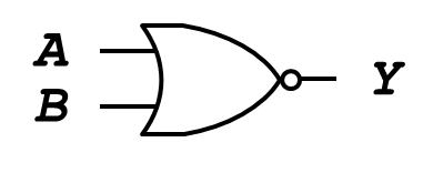 For the two-input NOR gate, the output Y is true only if both input A and input B are not true; otherwise the output Y is false, that gives us the Boolean Expression of: . The following figure shows the symbol and the truth table of the two-input NOR gate.
