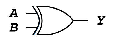 For the two-input XOR gate, the output Y is true or HIGH if either input A or input B is true, but not both, giving us the Boolean expression of: . In other words, the output Y is true if both input A and B are different. If both inputs are same, the output Y is false. The following figure shows the symbol and the truth table of the two-input XOR gate.