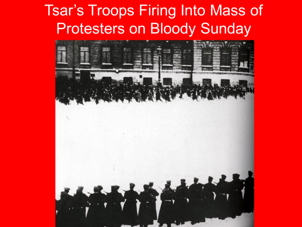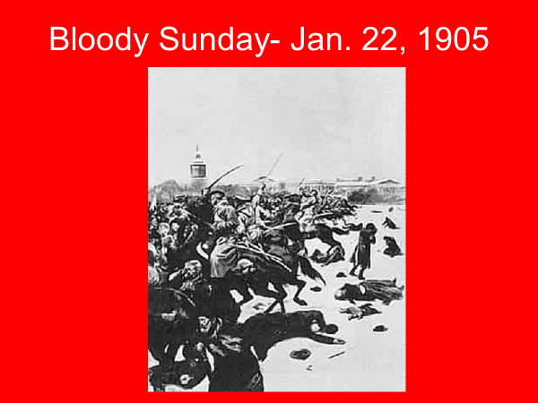 The disastrous war with Japan only incensed the opposition and raised calls for a constitutional assembly and civil liberties. Perhaps the most infamous episode in this event was Bloody Sunday (January 22, 1905), the scene of a set of strikes, peasant uprisings, and occasional mutinies—the army shot into a mass of protesters in an effort to regain control and caused numerous casualties. This culminated with a general strike in October. Nicholas cracked under the pressure and granted the October Manifesto, which guaranteed civil liberties and created the Duma (an elective legislative assembly). But the tsar retained complete control over the executive, army, foreign policy, church, etc.