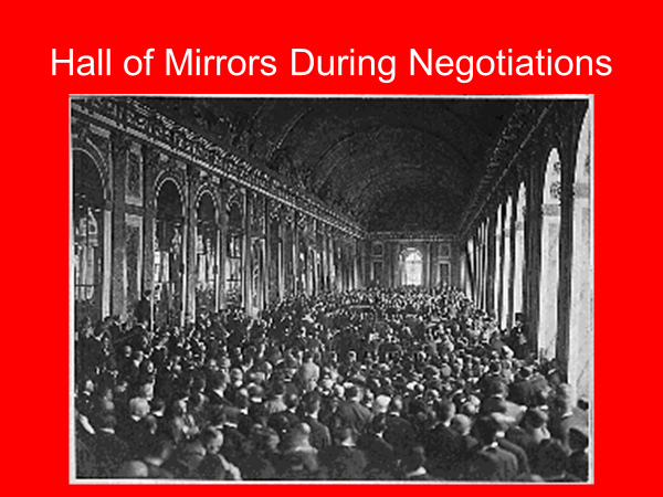 In June, the Allies gave Germany an ultimatum, either sign the treaty or be invaded. They had already laid down their weapons and were defenseless. On June 28th, 1919, the German delegates signed the treaty in the Hall of Mirrors, which was another jab in Germany, because it was where the German Empire had been proclaimed. The whole affair was staged to be deliberately humiliating to the Germans.