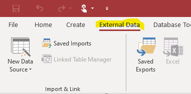 If Access is closed, the beginning steps are fairly intuitive. However, if a user has Access already open (viewing an existing database for example) then one simply needs to click the External Data tab at the top:
