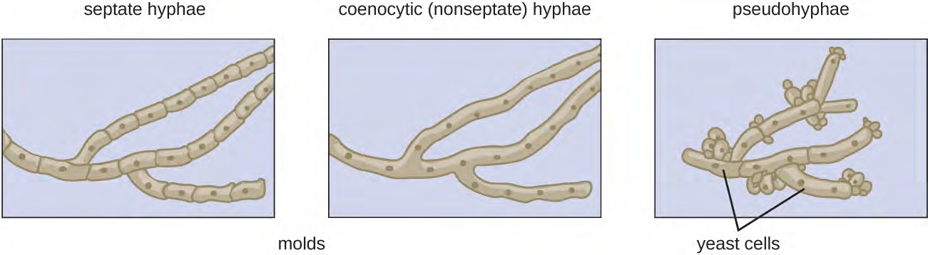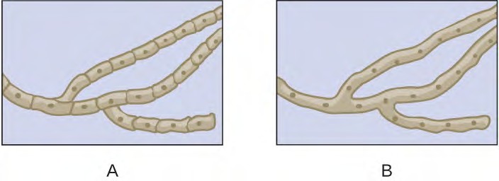 Which of the drawings shows septate hyphae?