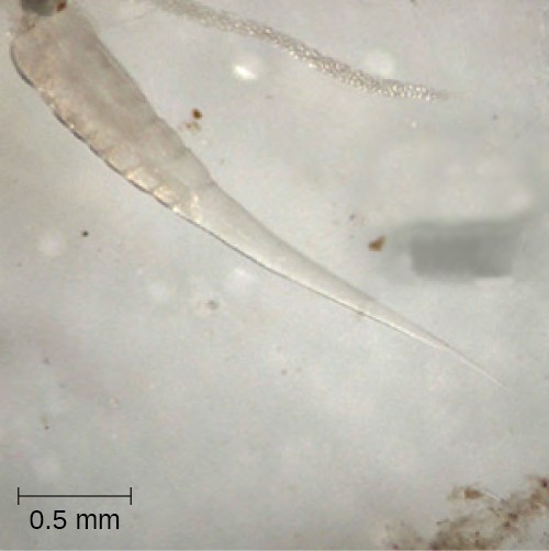 Figure 5.19 A micrograph of the nematode Enterobius vermicularis, also known as the pinworm. (credit: modification of work by Centers for Disease Control and Prevention)