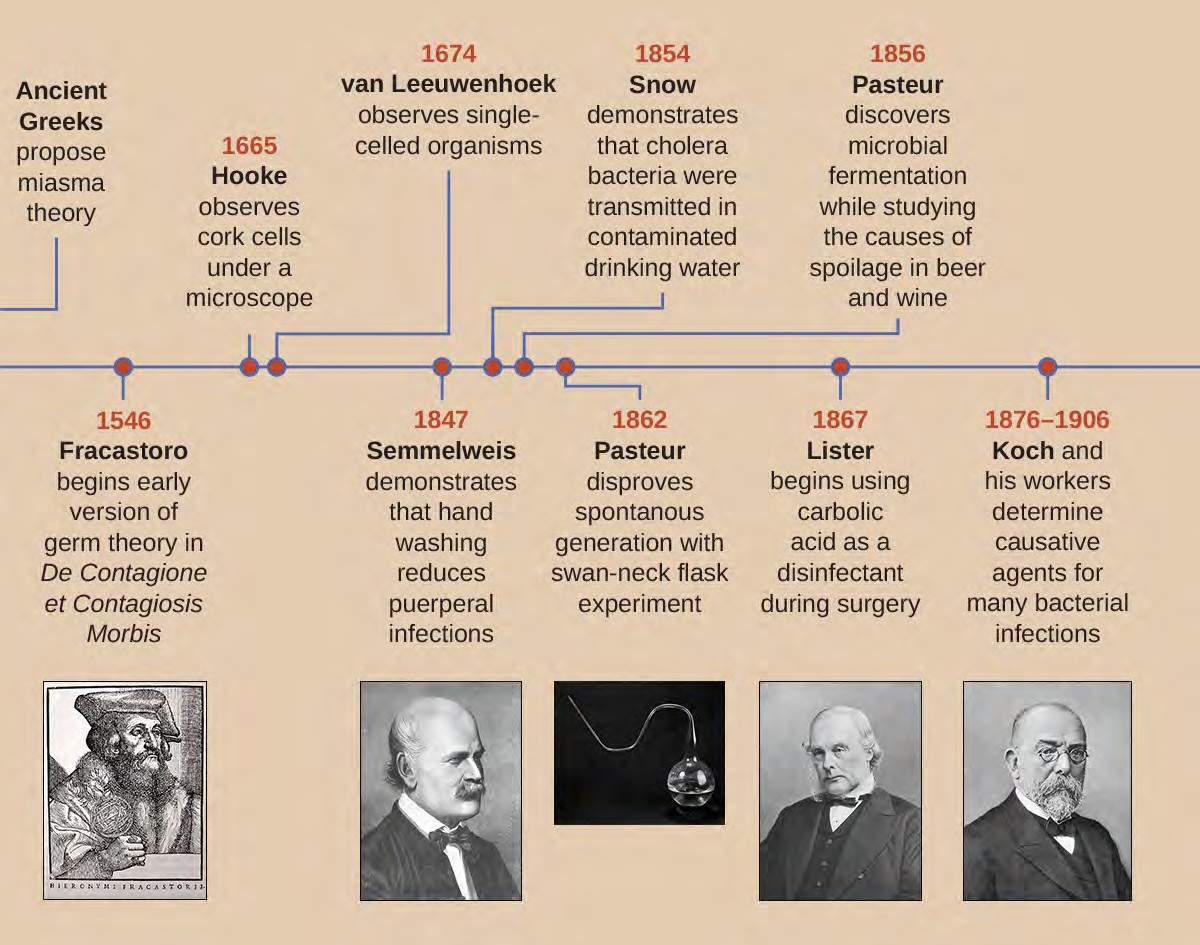 In 1546, Italian physician Girolamo Fracastoro proposed, in his essay De Contagione et Contagiosis Morbis, that seed-like spores may be transferred between individuals through direct contact, exposure to contaminated clothing, or through the air. We now recognize Fracastoro as an early proponent of the germ theory of disease, which states that diseases may result from microbial infection. However, in the 16th century, Fracastoro’s ideas were not widely accepted and would be largely forgotten until the 19th century.
