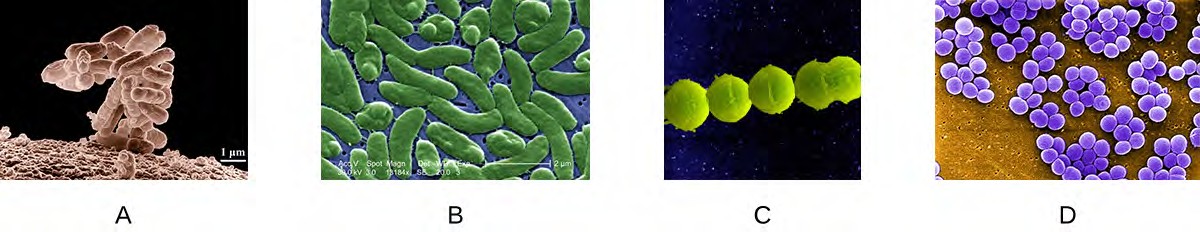 Figure 3.1 Microorganisms vary visually in their size and shape, as can be observed microscopically; but they also vary in invisible ways, such as in their metabolic capabilities. (credit a, e, f: modification of work by Centers for Disease Control and Prevention; credit b: modification of work by NIAID; credit c: modification of work by CSIRO; credit d: modification of work by “Microscopic World”/YouTube)