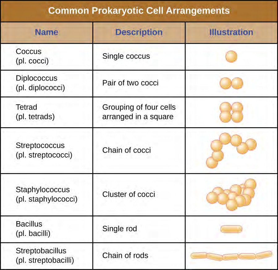 Describe common cell morphologies and cellular arrangements typical of prokaryotic cells and explain how cells maintain their morphology