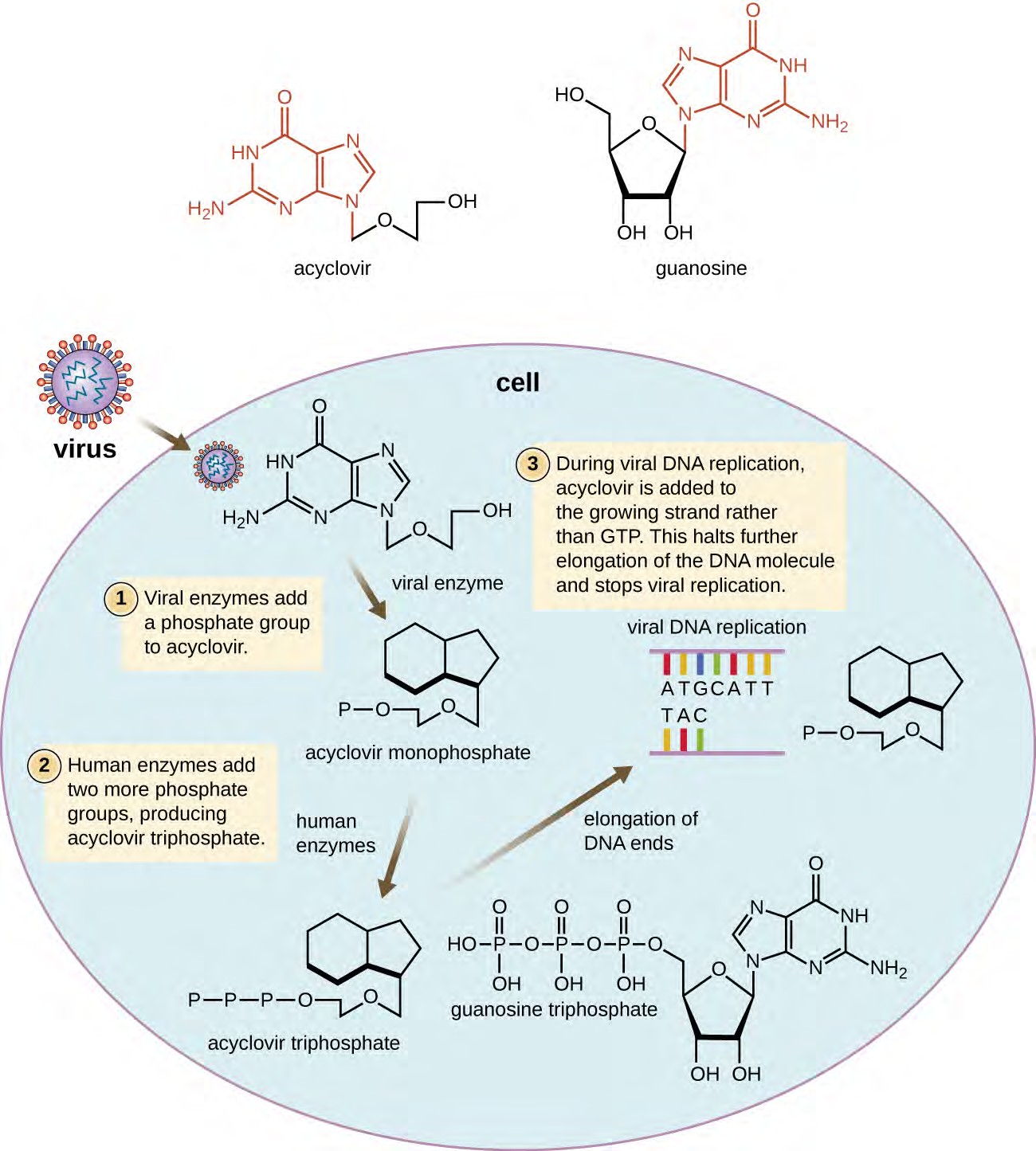An important quality for an antimicrobial drug is selective toxicity, meaning that it selectively kills or inhibits the growth of microbial targets while causing minimal or no harm to the host. Most antimicrobial drugs currently in clinical use are antibacterial because the prokaryotic cell provides a greater variety of unique targets for selective toxicity, in comparison to fungi, parasites, and viruses. Each class of antibacterial drugs has a unique mode of action (the way in which a drug affects microbes at the cellular level), and these are summarized in Figure 14.9 and Table 14.1.