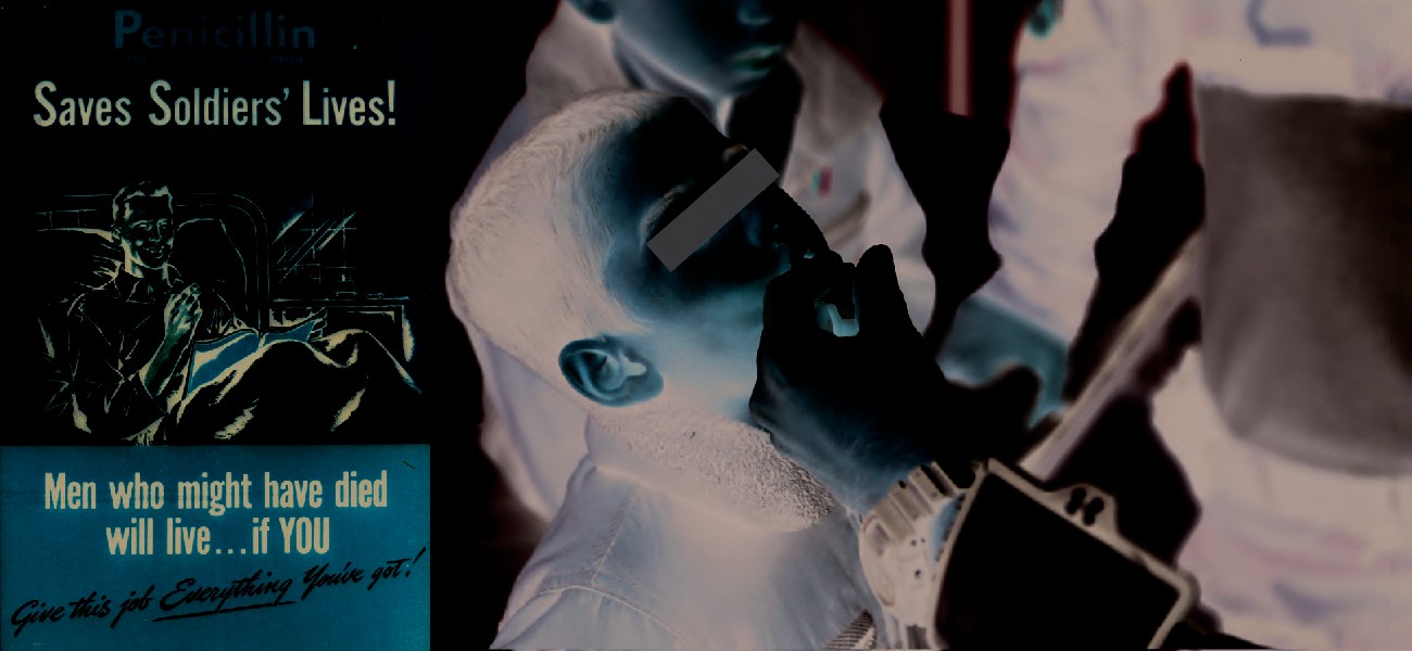 Figure 14.1 First mass produced in the 1940s, penicillin was instrumental in saving millions of lives during World War II and was considered a wonder drug.[1] Today, overprescription of antibiotics (especially for childhood illnesses) has contributed to the evolution of drug-resistant pathogens. (credit left: modification of work by Chemical Heritage Foundation; credit right: modification of work by U.S. Department of Defense)