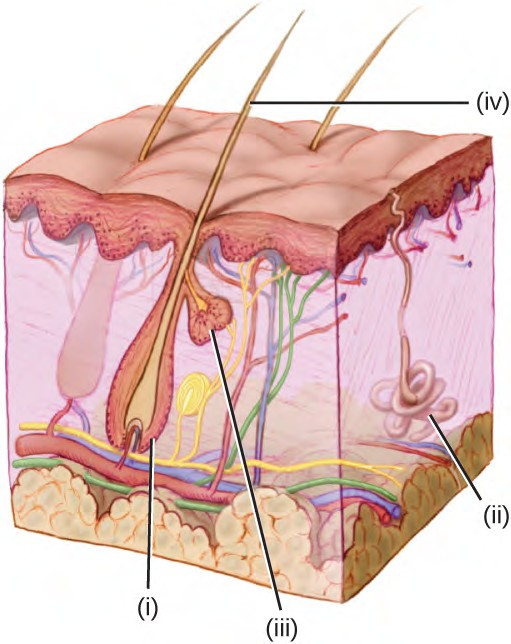 Human skin is an important part of the innate immune system. In addition to serving a wide range of other functions, the skin serves as an important barrier to microbial invasion. Not only is it a physical barrier to penetration of deeper tissues by potential pathogens, but it also provides an inhospitable environment for the growth of many pathogens. In this section, we will provide a brief overview of the anatomy and normal microbiota of the skin and eyes, along with general symptoms associated with skin and eye infections.