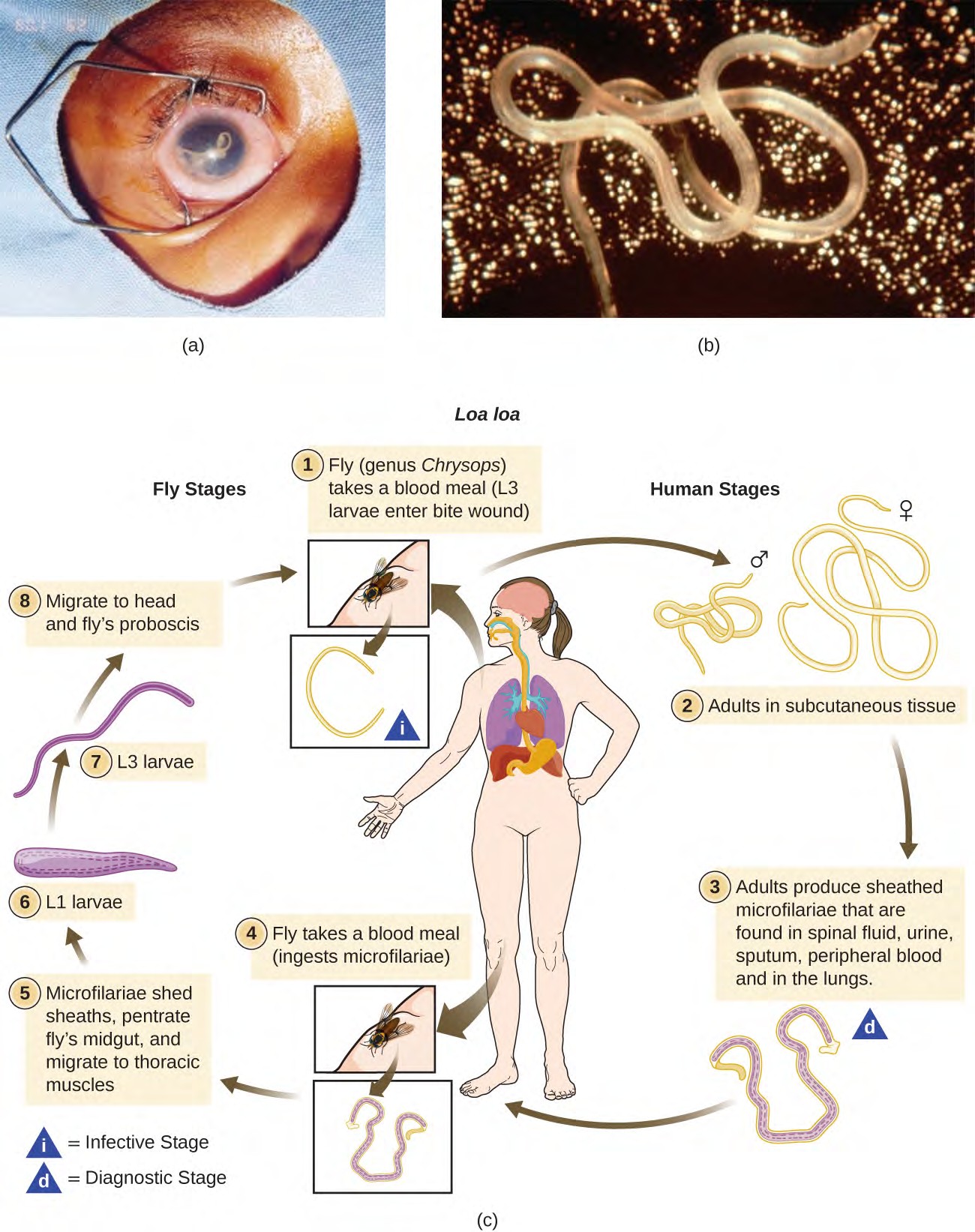 Figure 21.8 (a) Conjunctivitis is inflammation of the conjunctiva. (b) Blepharitis is inflammation of the eyelids. (c) Keratitis is inflammation of the cornea. (credit a: modification of work by Lopez-Prats MJ, Sanz Marco E, Hidalgo- Mora JJ, Garcia-Delpech S, Diaz-Llopis M; credit b, c: modification of work by Centers for Disease Control and Prevention)