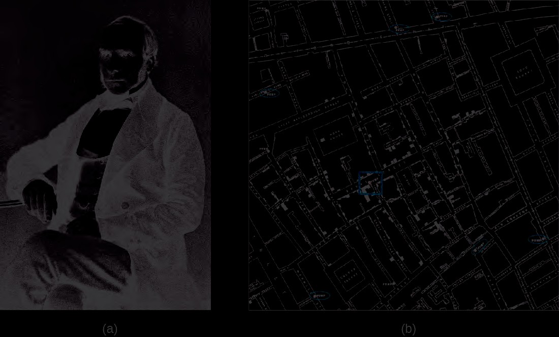 John Snow (Figure 16.5) was a British physician known as the father of epidemiology for determining the source of the 1854 Broad Street cholera epidemic in London. Based on observations he had made during an earlier cholera outbreak (1848–1849), Snow proposed that cholera was spread through a fecal-oral route of transmission and that a microbe was the infectious agent. He investigated the 1854 cholera epidemic in two ways. First, suspecting that contaminated water was the source of the epidemic, Snow identified the source of water for those infected. He found a high frequency of cholera cases among individuals who obtained their water from the River Thames downstream from London. This water contained the refuse and sewage from London and settlements upstream. He also noted that brewery workers did not contract cholera and on investigation found the owners provided the workers with beer to drink and stated that they likely did not drink water.[5] Second, he also painstakingly mapped the incidence of cholera and found a high frequency among those individuals using a particular water pump located on Broad Street. In response to Snow’s advice, local officials removed the pump’s handle,[6] resulting in the containment of the Broad Street cholera epidemic.