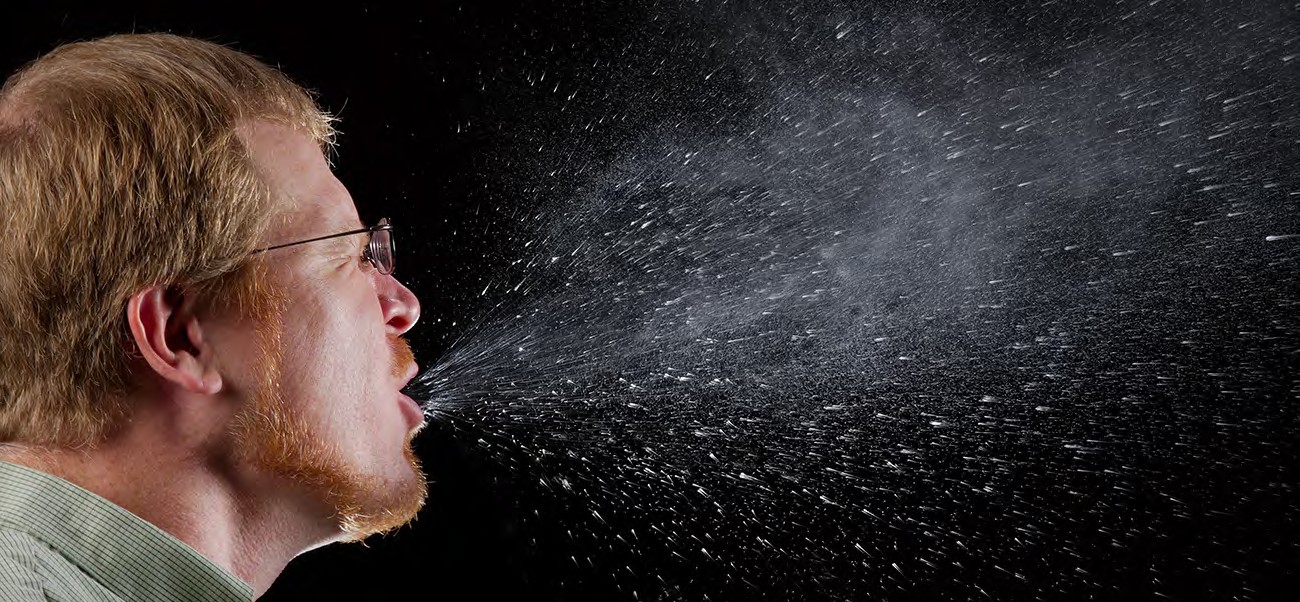 Figure 22.1 Aerosols produced by sneezing, coughing, or even just speaking are an important mechanism for respiratory pathogen transmission. Simple actions, like covering your mouth when coughing or sneezing, can reduce the spread of these microbes. (credit: modification of work by Centers for Disease Control and Prevention)
