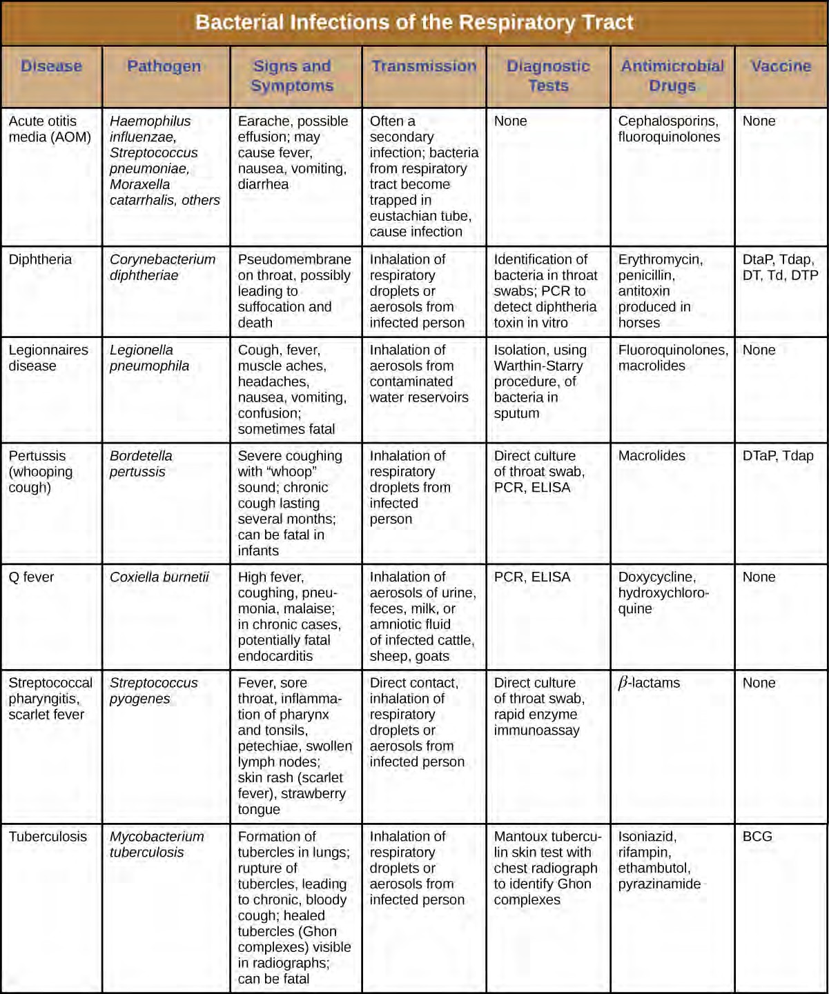 The respiratory tract can be infected by a variety of bacteria, both gram positive and gram negative. Although the diseases that they cause may range from mild to severe, in most cases, the microbes remain localized within the respiratory system. Fortunately, most of these infections also respond well to antibiotic therapy.