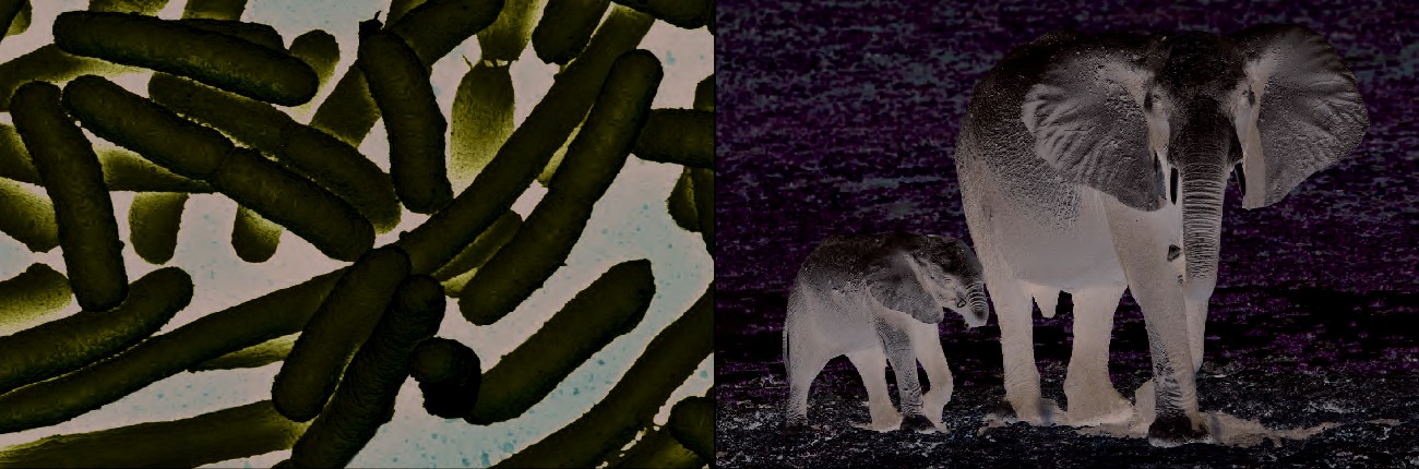 Figure 11.1 Escherichia coli (left) may not appear to have much in common with an elephant (right), but the genetic blueprints for these vastly different organisms are both encoded in DNA. (credit left: modification of work by NIAID; credit right: modification of work by Tom Lubbock)
