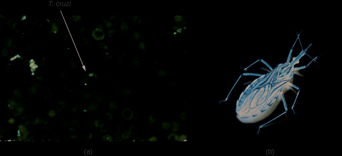 Chagas disease is a tropical disease transmitted by triatomine bugs. The trypanosome infects heart, neural tissues, monocytes, and phagocytes, often remaining latent for many years before causing serious and sometimes fatal damage to the digestive system and heart.