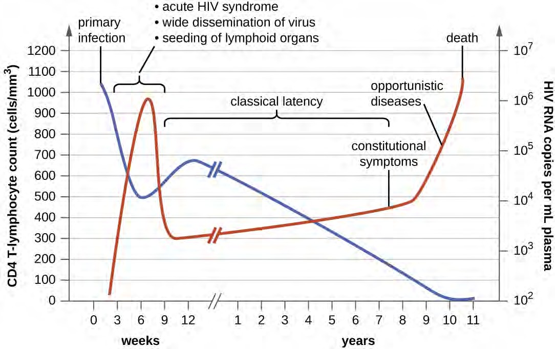 A patient at a clinic has tested positive for HIV. Her blood contained 700/µL CD4 T cells and she does not have any apparent illness. Her infection is in which stage?